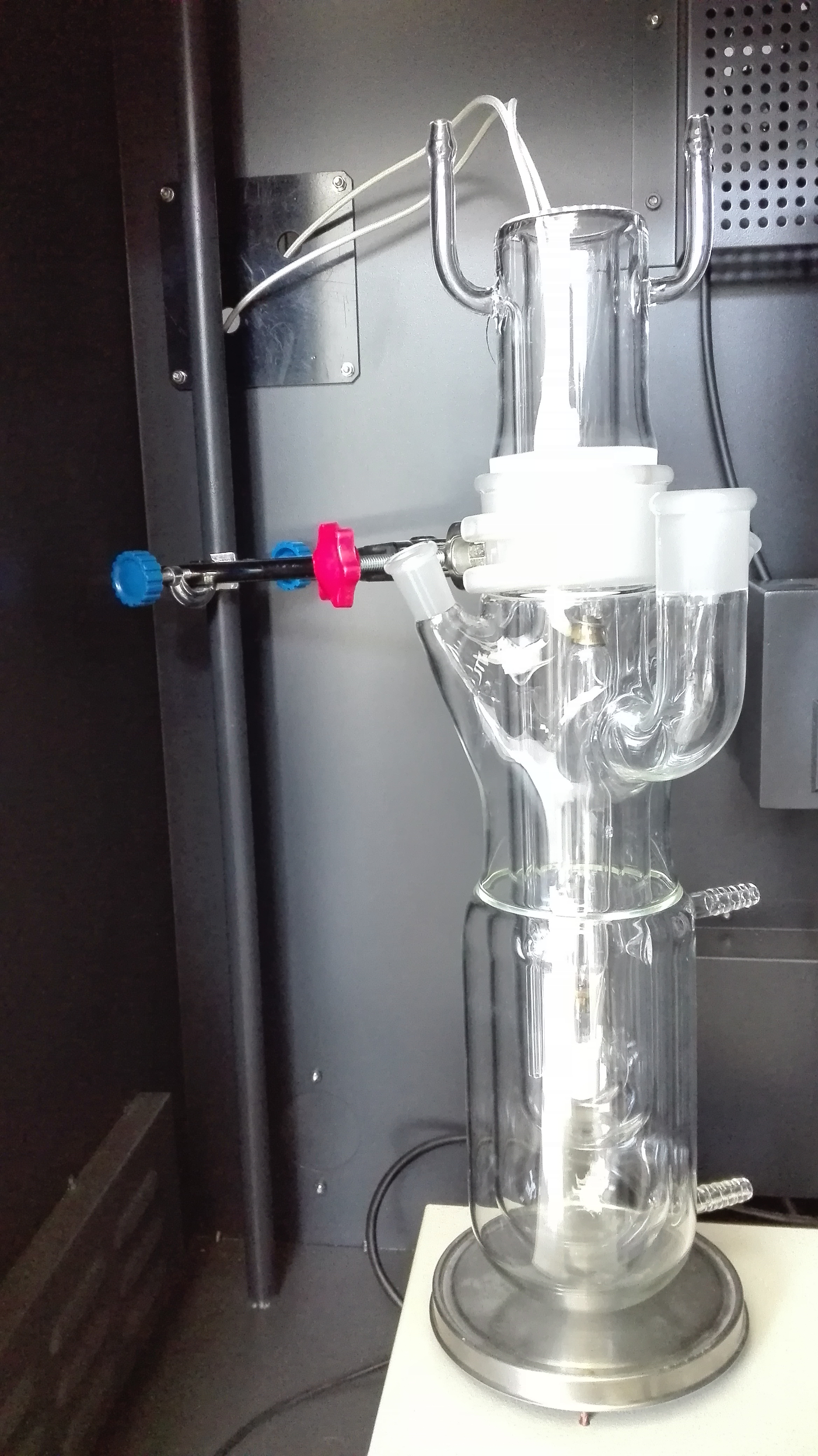型號:PH 250,采用PYREX玻璃,用于光化學(xué)反應(yīng)容器,可以配合冷阱、磁力攪拌,溶液可以有效的接收汞燈照射。反應(yīng)器有效容積250ml,磨口60/40,14/23,19/26,24/29。