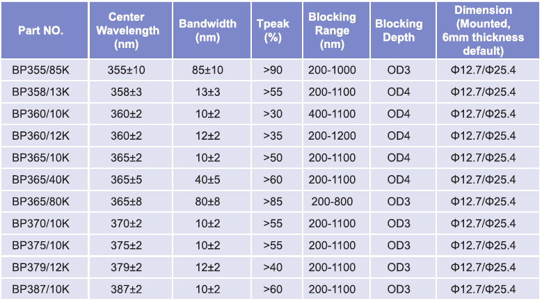 4、庫存:上萬種標(biāo)準(zhǔn)及非標(biāo)準(zhǔn)帶通濾光片產(chǎn)品現(xiàn)貨供應(yīng)