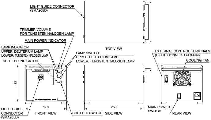 通過使用安裝在同一外殼內(nèi)的高亮度氘燈和鹵鎢燈,該光源能通過光波導(dǎo)(單賣)輸出200nm到1600nm的光。輸出的光強(qiáng)大約是現(xiàn)有型號(hào)的兩倍。緊湊的尺寸和較輕的重量使其易于攜帶。機(jī)械快門和外部控制等實(shí)用的功能使其易于使用。這種新型光源同時(shí)適用于多種型號(hào)的便攜式設(shè)備。