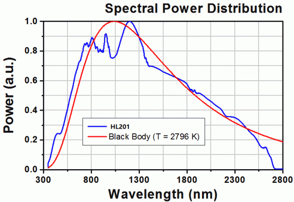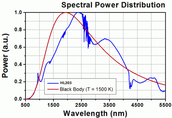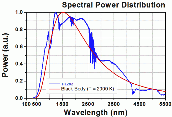 HL203 類鹵鎢燈光源光源具有在500 至9000 nm 間的恒定光強,>1.5 W 的黑體輻射光譜。由于該黑體光譜覆蓋了可見光和中紅外光譜范圍,這個光源是集成到中紅外測量和分析系統(tǒng)的理想選擇。它使用了一個位于橢球反射器內的碳化硅棒,以增大光輸出。一個CaF2 透鏡準直光源發(fā)射的光。包含的自定義濾光片支架加工成匹配光源外殼的高度,并且也經(jīng)過了紅色陽氧化處理。