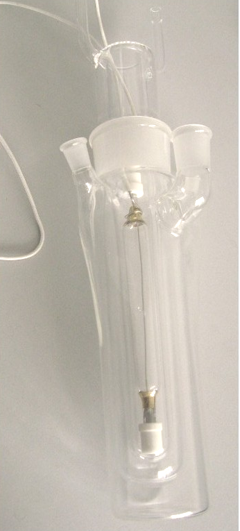 石英冷阱 型號:PH225,石英玻璃材質(zhì),用于長弧汞燈的冷卻,可以通除部分紅外光降低熱效應(yīng),磨口60/40,有效長度225mm