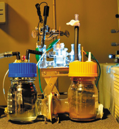該團隊將太陽能電池與微生物燃料電池巧妙地整合在一起,利用太陽能和廢水中的有機養(yǎng)分生產(chǎn)清潔能源—氫氣。這一新型裝置首先將太陽能轉(zhuǎn)化為電能,然后將電子傳遞給廢水中的微生物使其有足夠的能量分解廢水中的有機物。其中的一些細菌在消耗有機物的同時產(chǎn)生電子,這些電子通過導線被傳回太陽能用以分解水—生成氫氣和氧氣。實驗證明,廢水中2/3的有機廢物在兩天之內(nèi)就會被分解掉。盡管凈化之后的廢水還不能直接飲用,但是如果將這一成果應(yīng)用于廢水處理廠將使得生活廢水處理過程大幅簡化,更重要的是與此同時大量生產(chǎn)氫氣這一清潔能源。