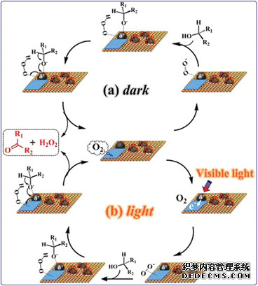 TiO2@NC-Ru-T中氮摻雜碳不僅增強(qiáng)了Ru納米顆粒的催化性能,同時(shí)通過(guò)Mott-Schottky接觸促進(jìn)了光活化Ru納米顆粒中光生電子向TiO2的輸運(yùn)。在可見光照射下,上述效應(yīng)可以大增強(qiáng)乙醇在空氣中的選擇性需氧氧化。這一研究為光催化反應(yīng)中提高可見光吸收和電荷/電子轉(zhuǎn)移提供了可行的方法,也為開發(fā)將太陽(yáng)能轉(zhuǎn)化為相關(guān)化學(xué)品的能源轉(zhuǎn)換反應(yīng)催化劑指明了新的方向。