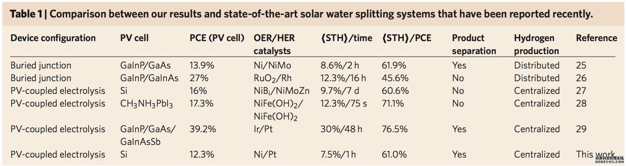 太陽能產氫一直是人類孜孜追求的目標。但如何實現(xiàn)大規(guī)模持續(xù)、廉價產氫是為棘手又亟待解決的問題。在傳統(tǒng)電解槽結構中,產氫和產氧在同一槽中。但這一方式在光電產氫領域受到了大的限制。如何整合太陽能的轉化與電解水產氫成為關鍵。本文中,作者通過分離產氫、產氧過程,并利用輔助電作為“調節(jié)劑”,成功實現(xiàn)大面積太陽能轉化與集中式產氫,太陽能產氫轉換效率達到7.5 %。同時,較之傳統(tǒng)光電化學體系,該方法在成本、安全性以及穩(wěn)定性上都具有一定的競爭優(yōu)勢。