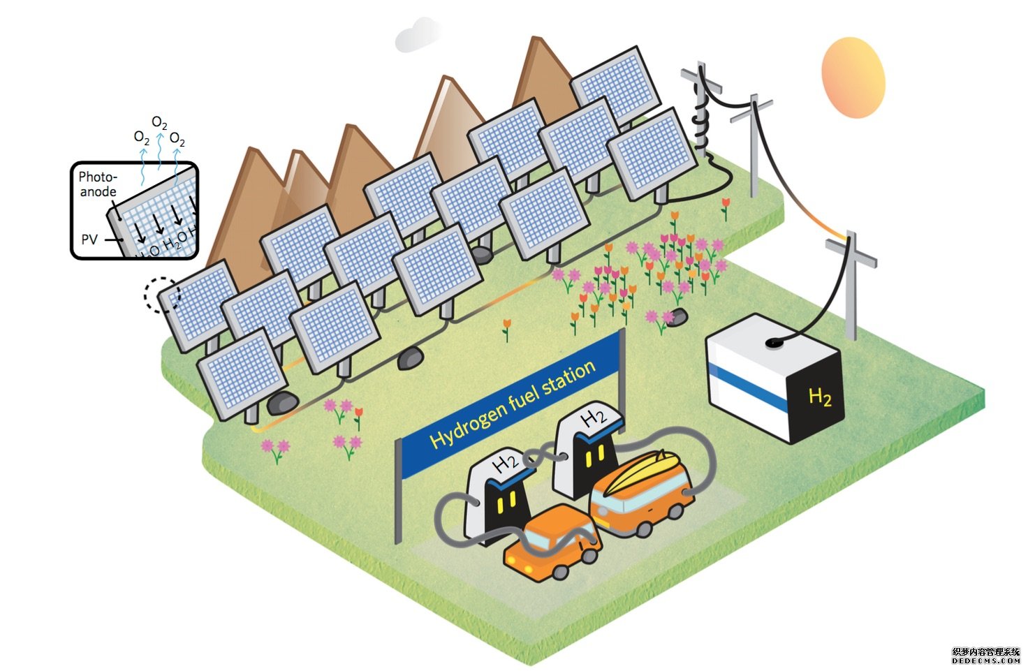 好和諧的一張圖。地毯式的太陽能面板加集中式電解水產氫。