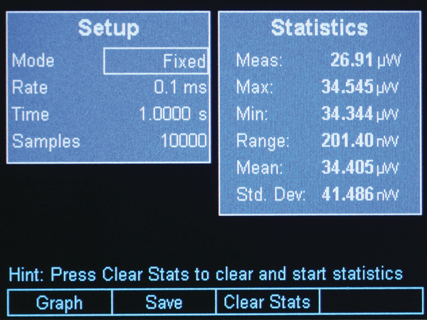 能夠進行脈沖峰間測量,在樣本速率為250 kHz 時,重復頻率高達4 kHz。脈沖、峰間和DC 光源測量可以WdBm、dBJ、A、V Sun 等為單位進行顯示,取決于使用的探測器類型。